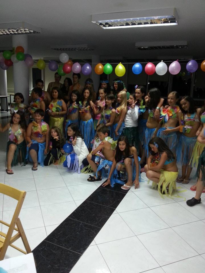 Tras la Party Pool de la tarde, las profes nos ayudaron a terminar nuestros collares y las faldas para la fiesta Hawaiana de esa noche.